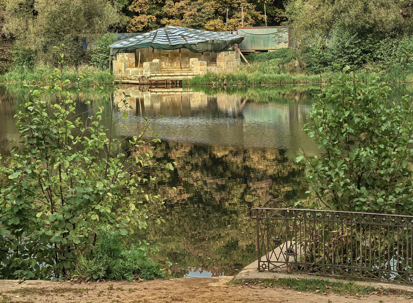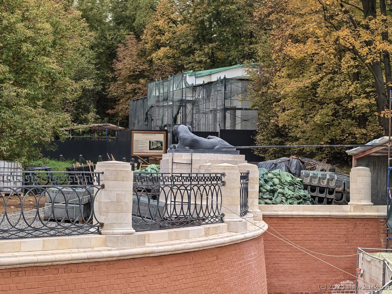 +увеличить+Источник: Яндекс.КартыЕгипетский павильонЕсли скотный двор находится на лесной территории усадьбы, то Египетский павильон расположился у самого ее входа. На восстановление бывшей кухни князей Голицыных потратят почти