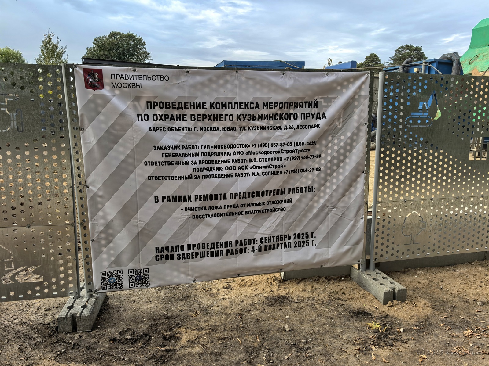 Согласно техническому заданию, при подготовке к работам строители должны будут установить ограждения вокруг здания, а рядом они обязаны поставить информационный щит. За ограждениями - бытовки для строителей.